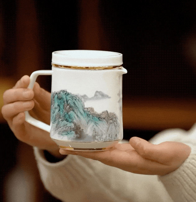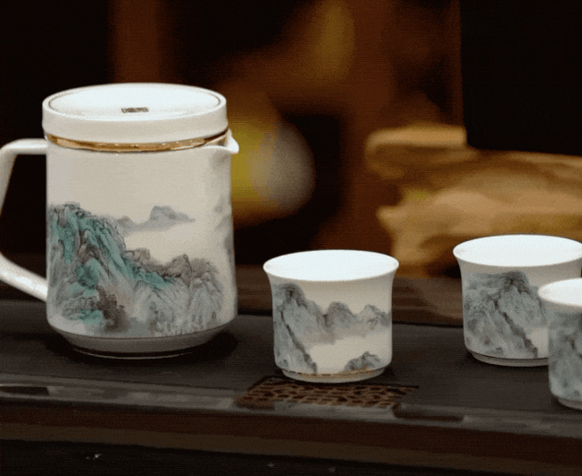 这套茶具,正是以国画《江山如此多娇》作为福运传承,与瓷器创新融合,向时代致敬,为国人献礼,是一款人人都用得上的白瓷茶具。